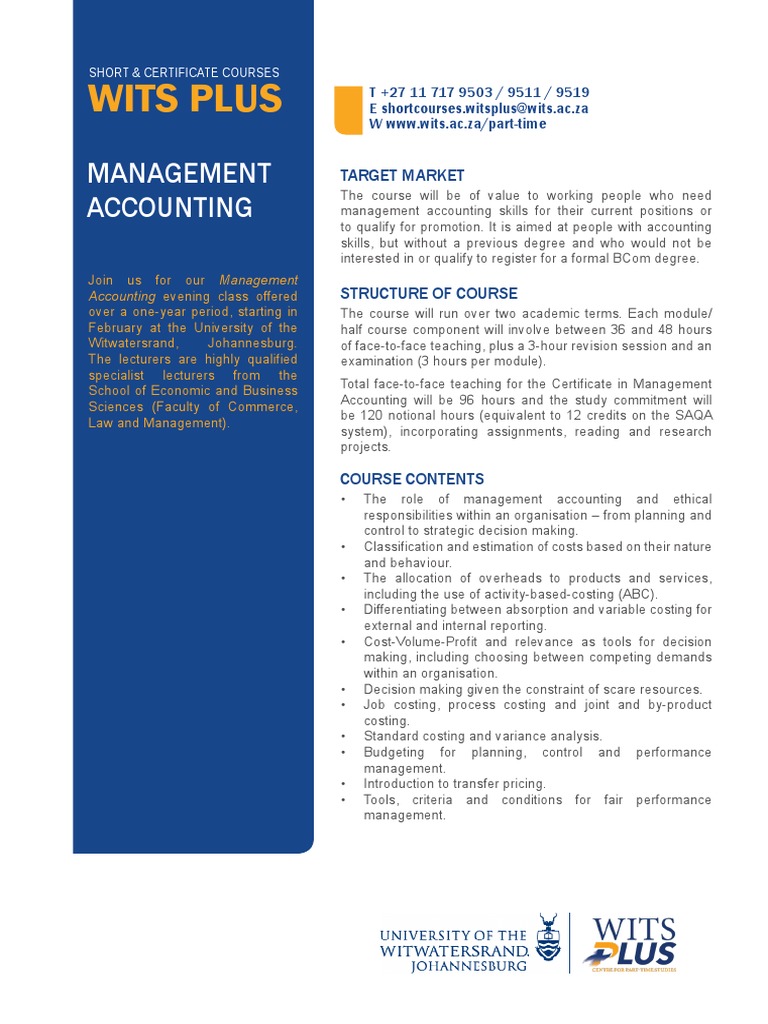 An Overview of the Certificate in Management Accounting Short Course