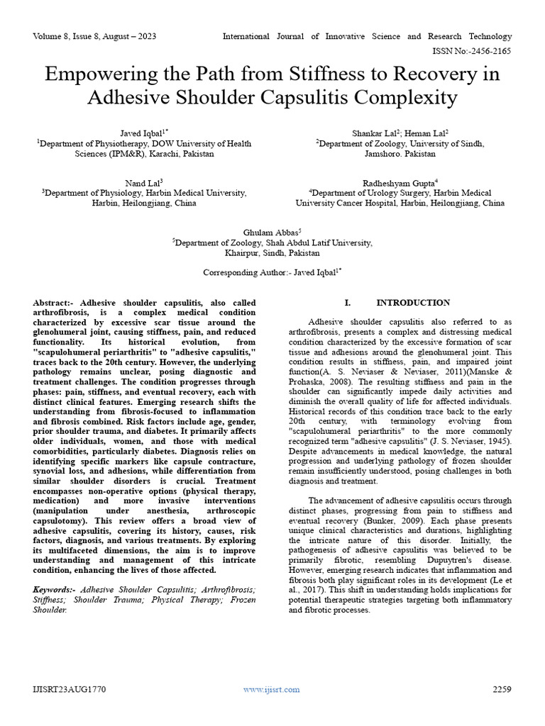 Empowering The Path From Stiffness To Recovery in Adhesive Shoulder