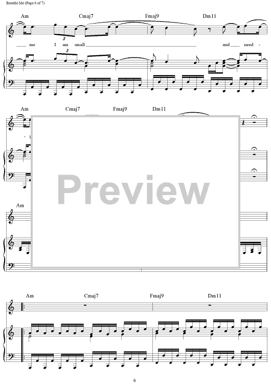 Breathe Me" Sheet Music by Sia for Piano/Vocal/Chords Sheet Music Now