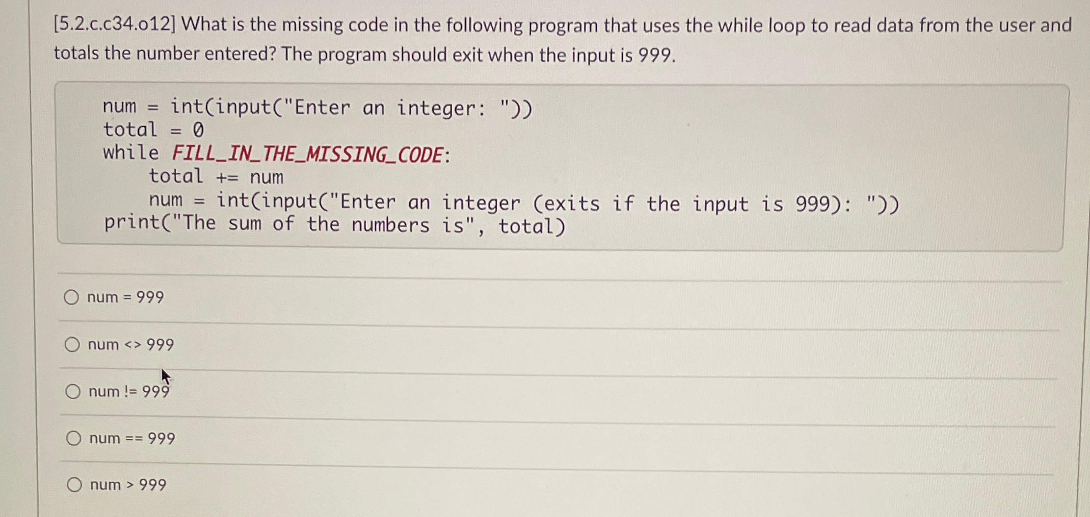 Solved [5.2.c.c34.o12] What is the missing code in the