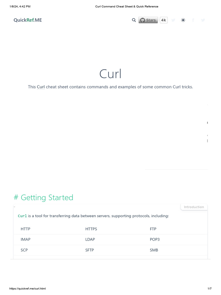 GitHub curl/curlcheatsheet A single page document with the most