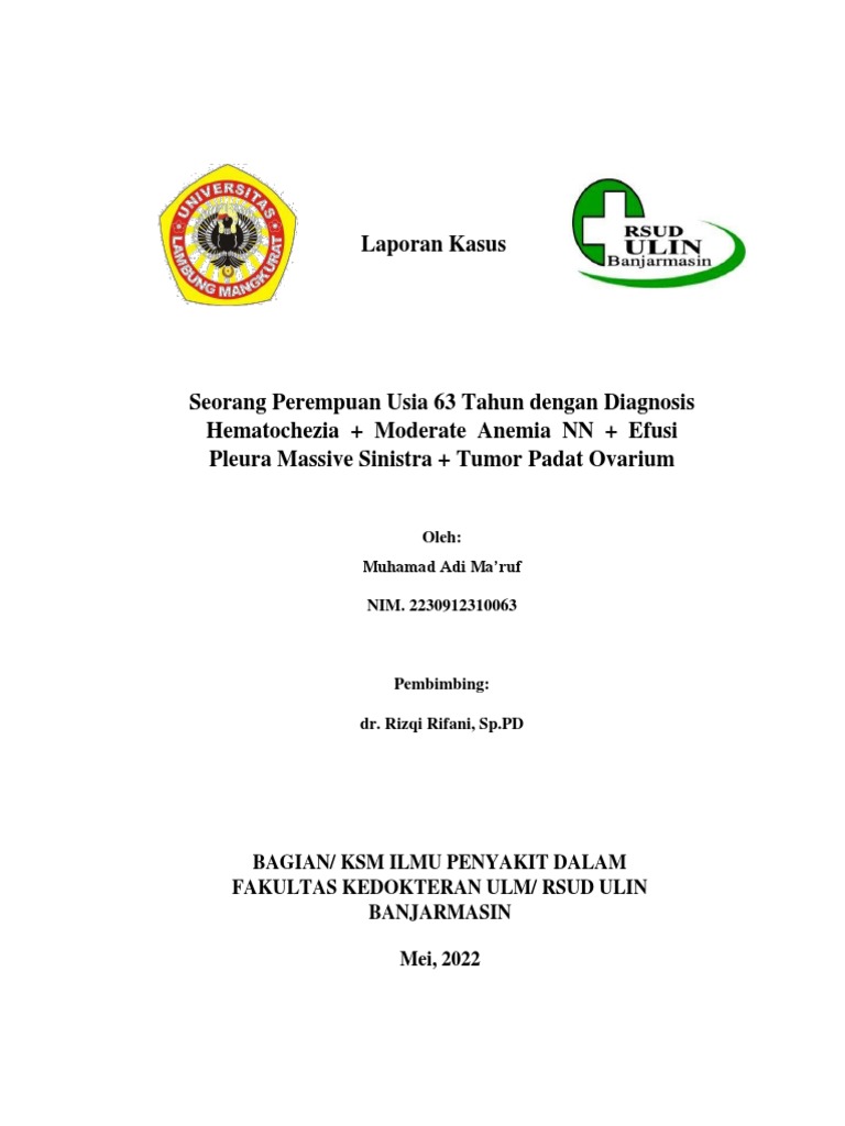 LAPSUS Diagnosis Hematochezia + Moderate Anemia NN + Efusi Pleura
