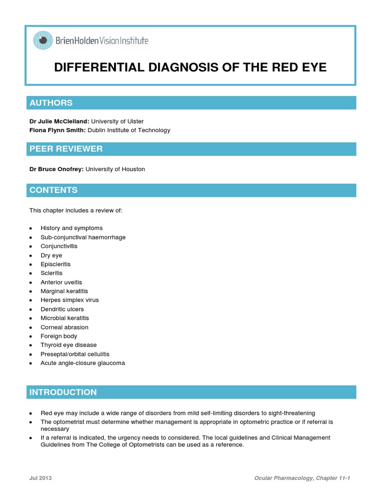 11 Differential Diagnosis Red Eye PDF Diseases Of The Eye And