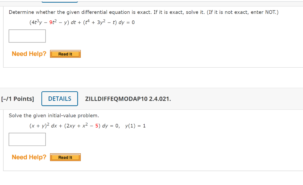 Solved Exact Differential Equations Verify that the given