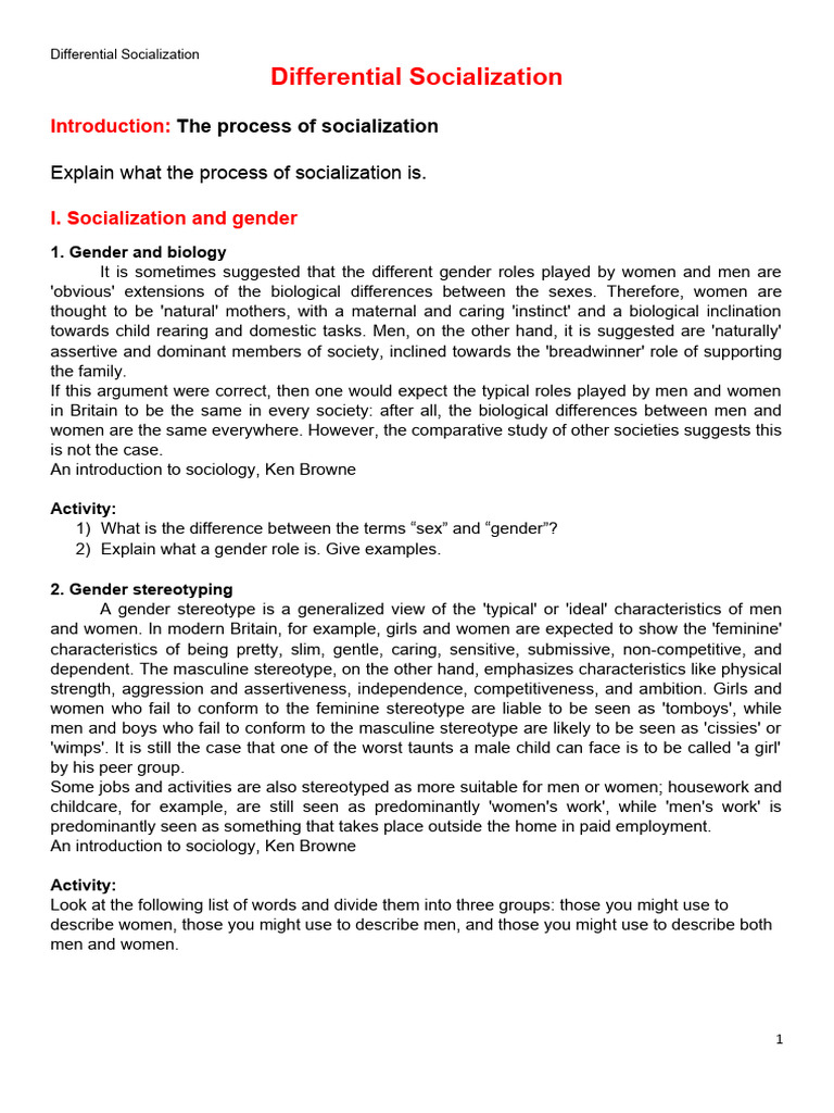 Differential socialization refers to the act of treating people differently based on societal beliefs about. Differential gender socialization poses significant challenges to achieving gender equality in.
