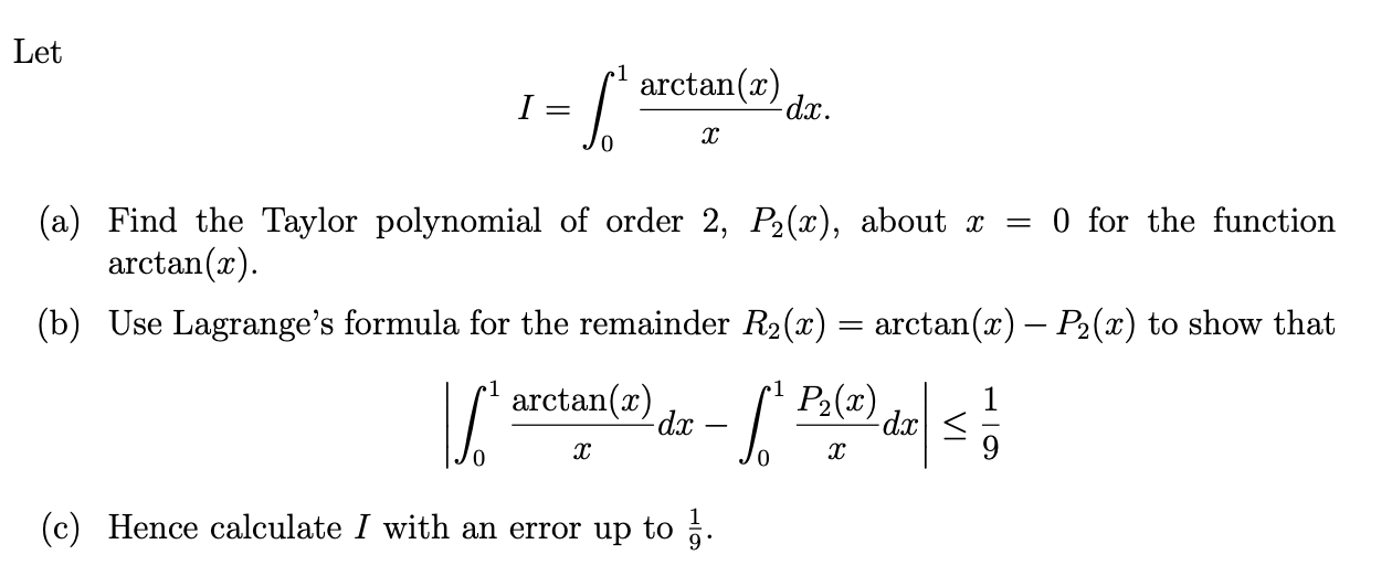 Solved 3. Let I=arctan(x)/x(dx). (a) Find the Taylor
