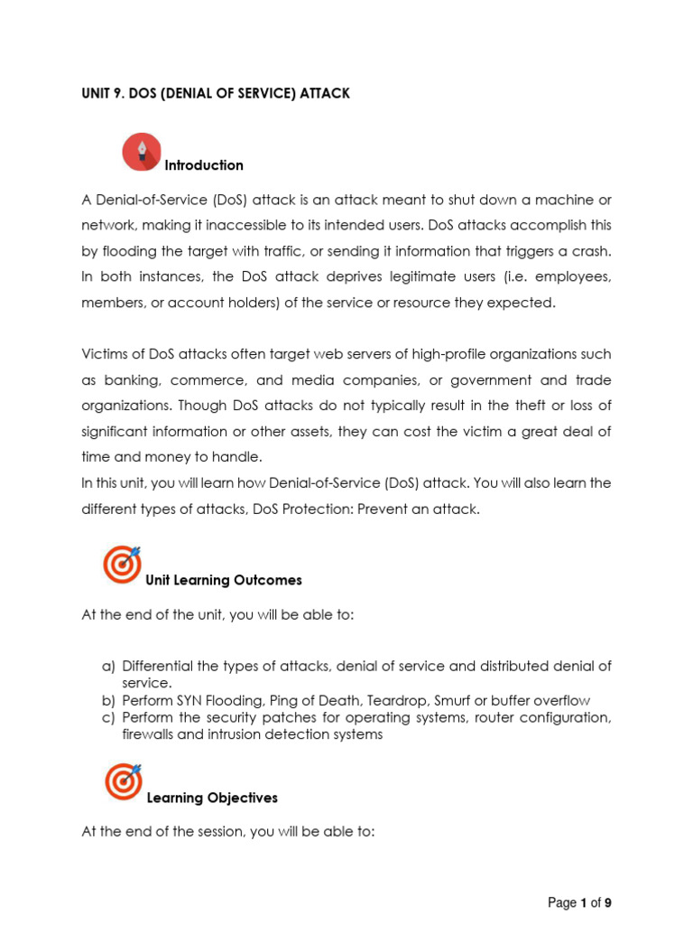 Unit 9 DOS Attack PDF Denial Of Service Attack Transmission