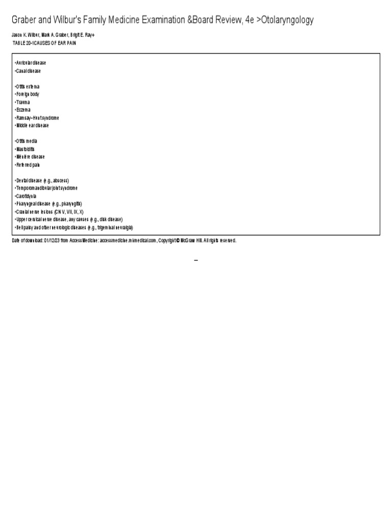 Table 201 Causes of Ear Pain PDF
