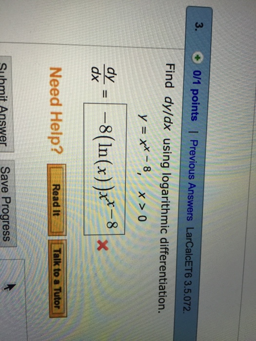 Solved Find the derivative dy/dx using logarithmic