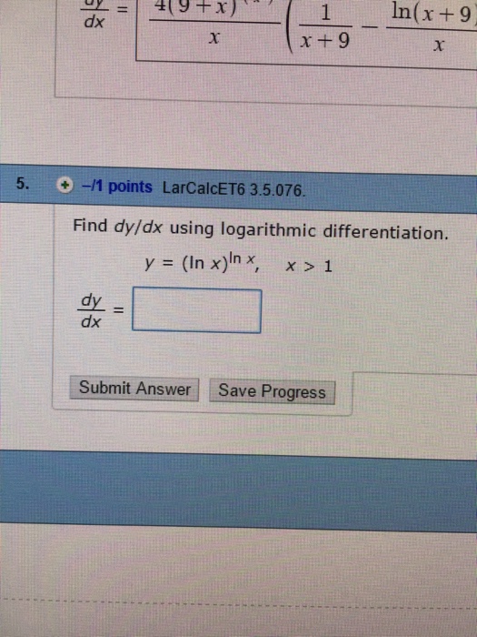 Solved Find dy/dx using logarithmic differentiation y =
