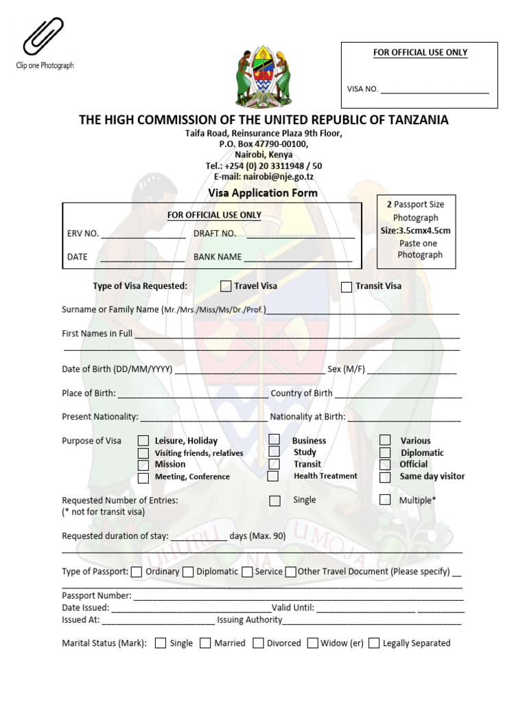Visa Application Form Fillable PDF