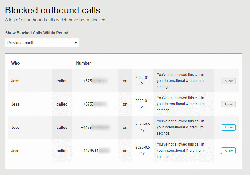Call Handling Blocked Callers Line2 Support