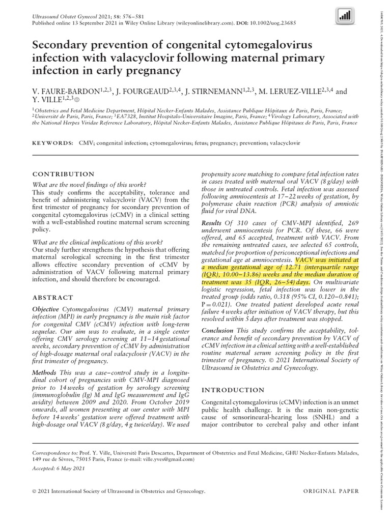 Secondary Prevention of Congenital Cytomegalovirus Infection With