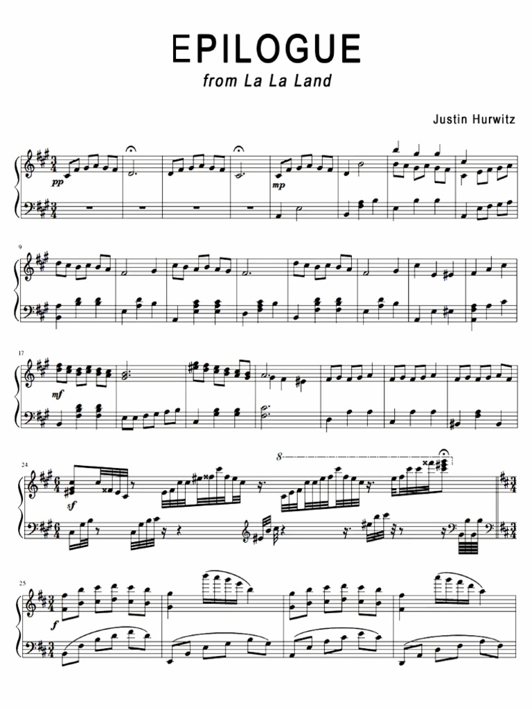 La La Land Epilogue Sheet Music / Piano Score Free PDF Download