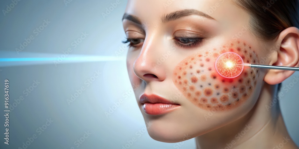 Laser shot to collagen cells to treatment saggy skin. Facial laser