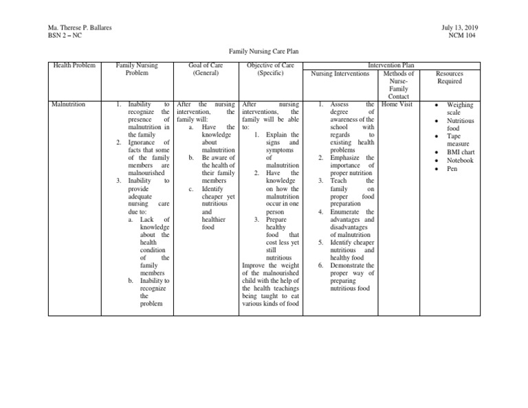 Family Nursing Care Plan PDF Malnutrition Hygiene, 59 OFF
