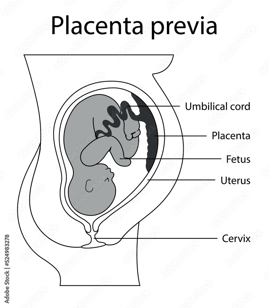 Placental previa. Fetus in Uterus During Pregnancy. Pregnancy women