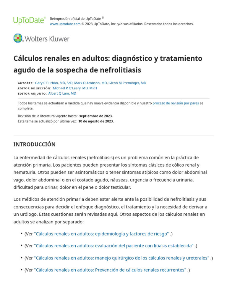 Kidney Stones in Adults Diagnosis and Acute Management of Suspected