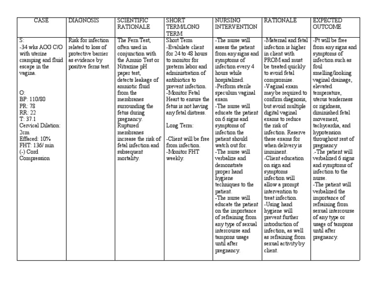 Nursing Care Plan PPROM 1 PDF Childbirth Vagina
