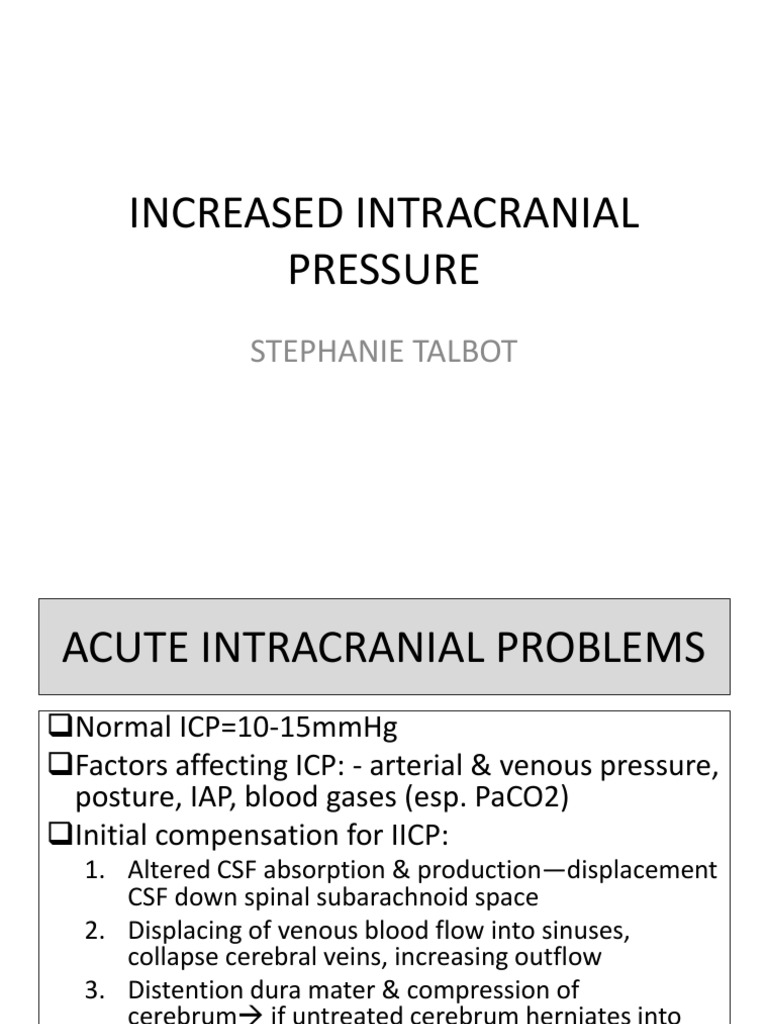 Nursing care for patients with raised intracranial pressure is challenging and. To understand the patho of increased intracranial pressure, you must understand the monro. Describe the causes of increased intracranial pressure. Review diagnostic imaging studies, such as ct scans or mris, to identify the underlying cause.