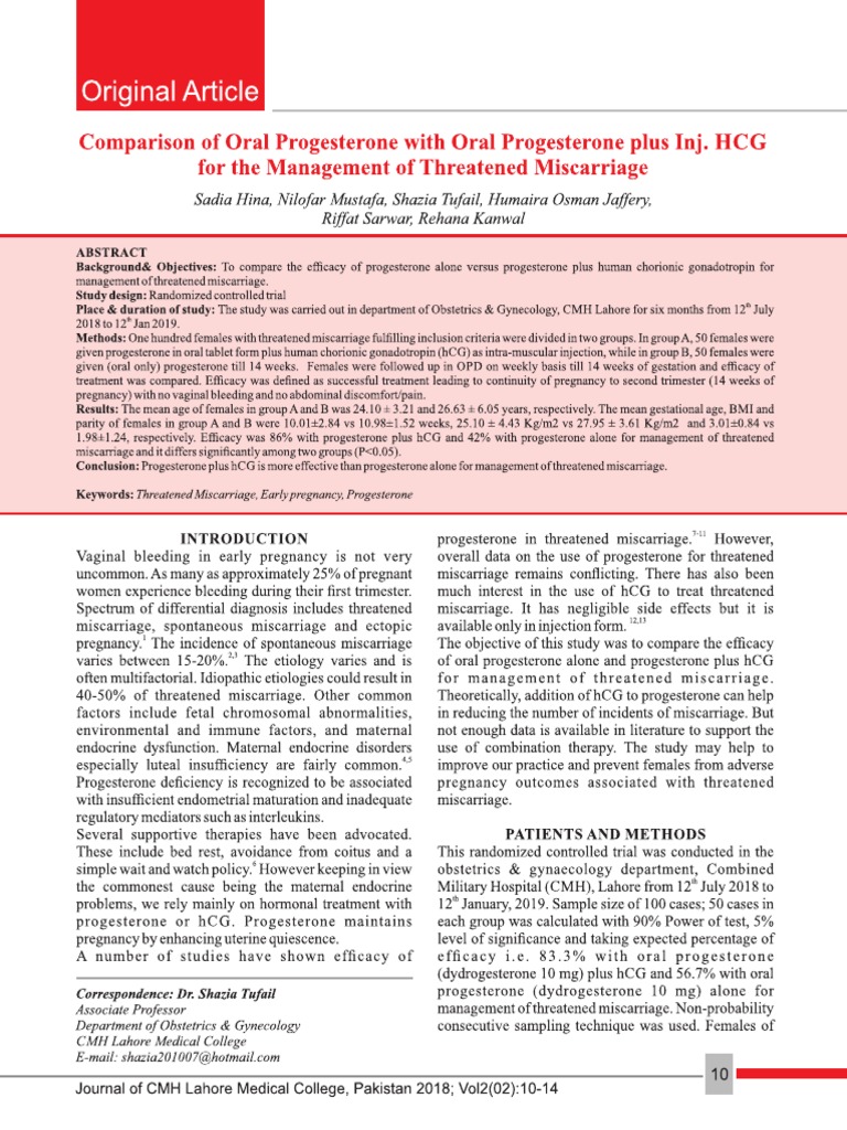 Comparison of Oral Progesterone With Oral Progesterone Plus Inj. HCG