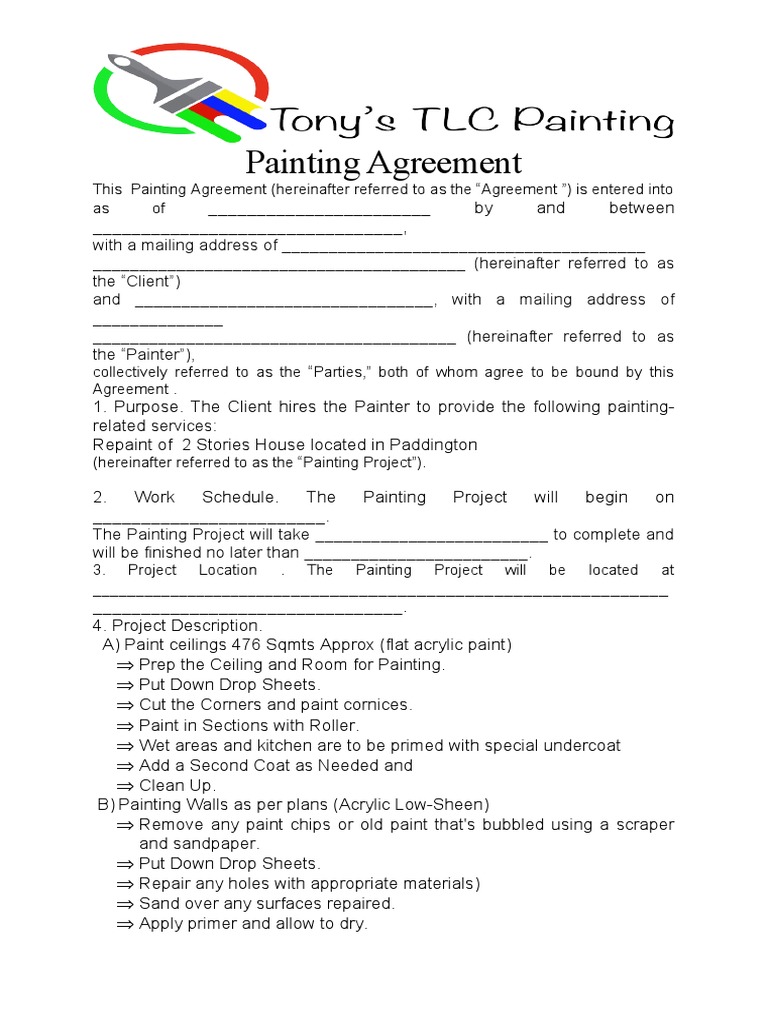 Here's what you'll find in the painting contract: A simple painting contract template that can be. We at wordlayouts have developed a painting contract template that contains standard terms.