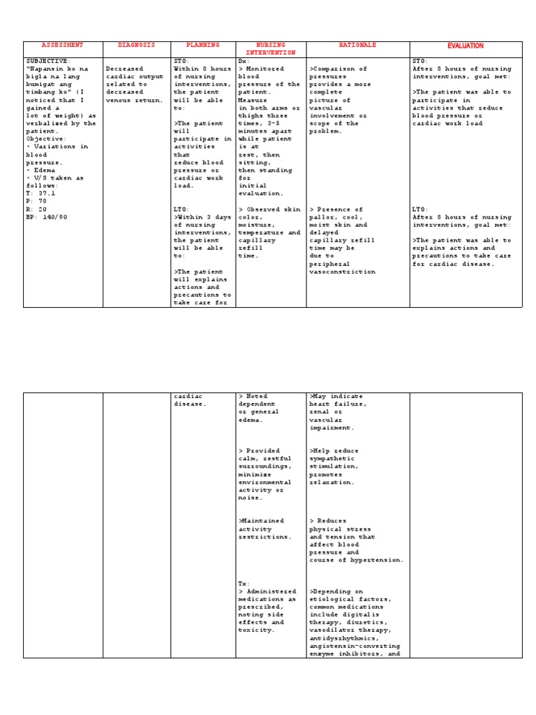 Hypertension Nursing Care Plan Ncp Nursing Care Plan Ncp Assessment