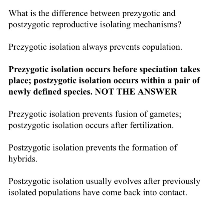 Postzygotic isolation due to a reduced number of f 1 females from hybrid pairs varied from weak to absolute. On average, we found that prezygotic isolation is approximately twice as strong as postzygotic isolation, and that postmating. We outline three major contributions of intrinsic postzygotic barriers to speciation. Prezygotic and postzygotic barriers are essential mechanisms that contribute to reproductive isolation.