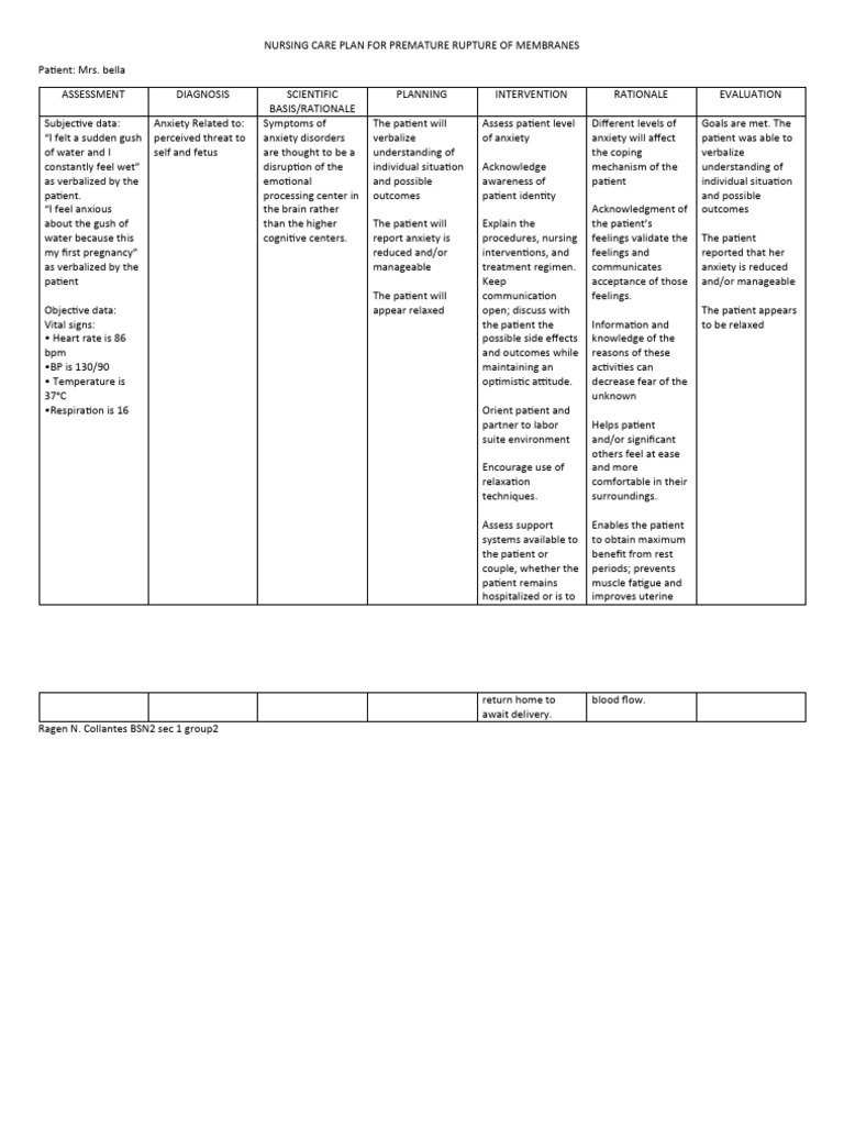 Nursing Care Plan For Premature Rupture of Membranes PDF Anxiety