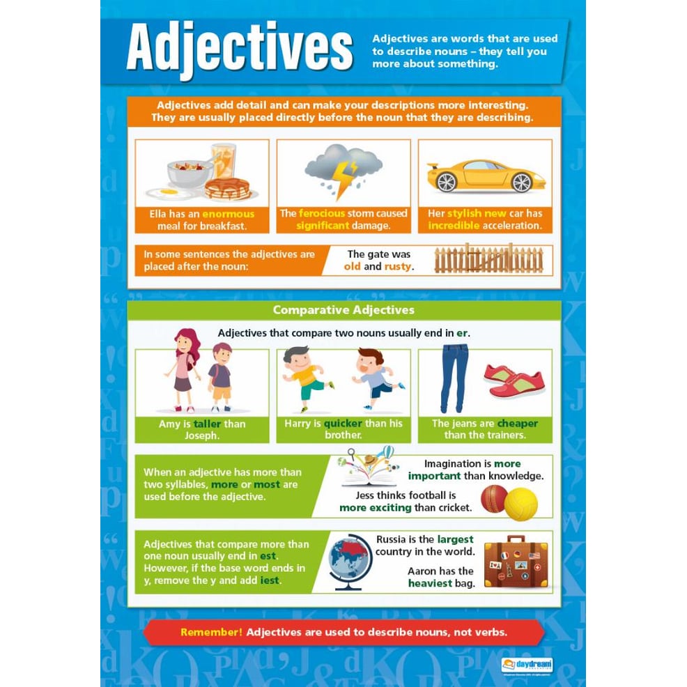 A set of printable posters featuring synonyms for useful adjectives. English adjectives posters for learning and teaching grammar in a fun way. Great for wall displays to. A variety of printable flashcards, posters, worksheets, games to learn, practise and revise.