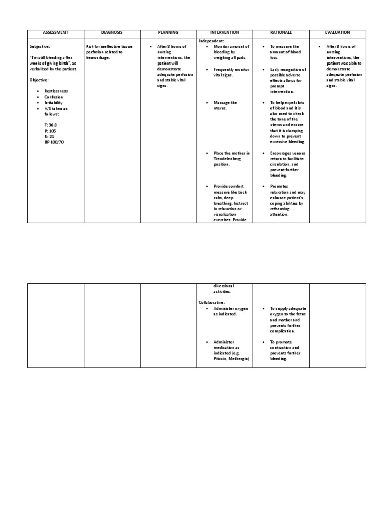 Postpartum Hemorrhage Nursing Diagnosis And Nursing Care Plan Porn