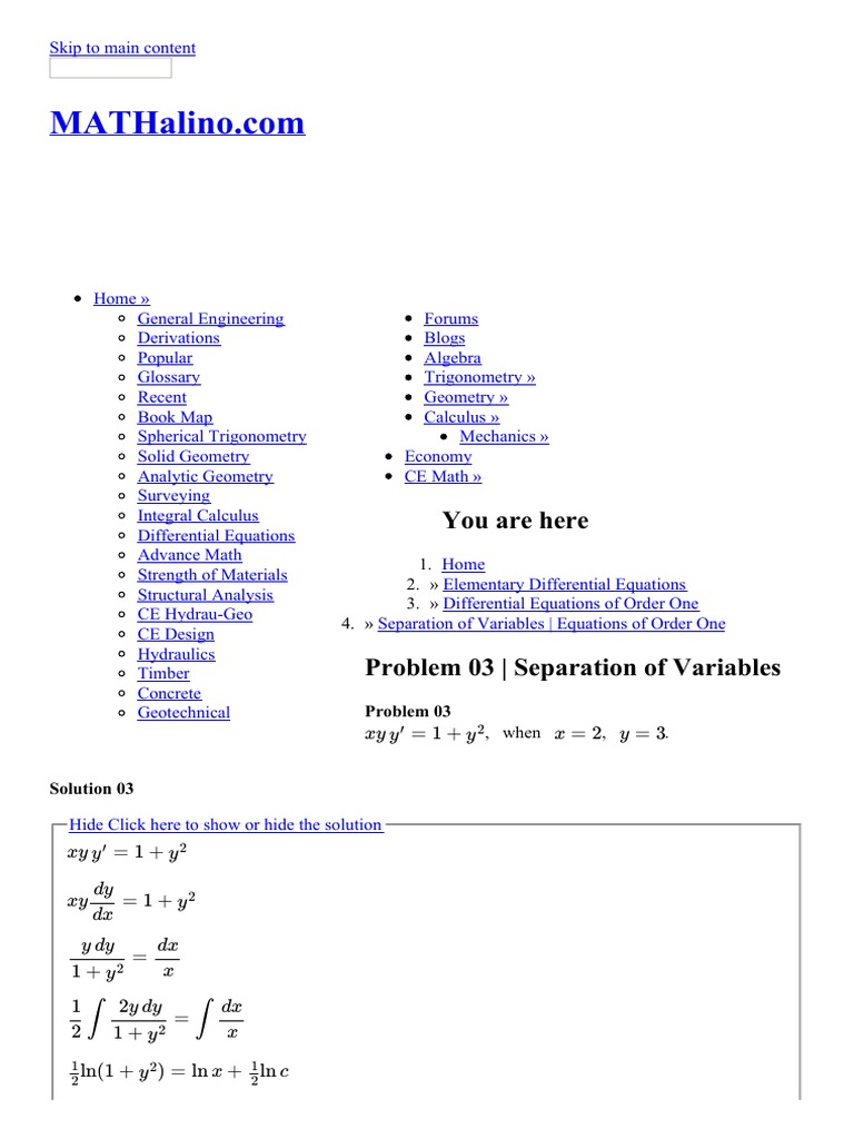 Problem 03 _ Separation of Variables _ Elementary Differential