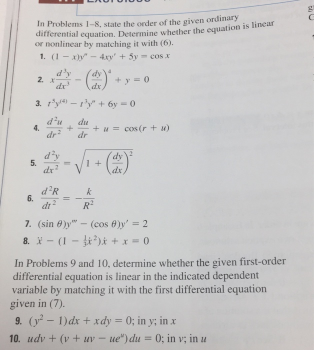 Solved In Problems 18 state the order of the given ordinary