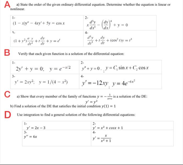 Solved A a) State the order of the given ordinary