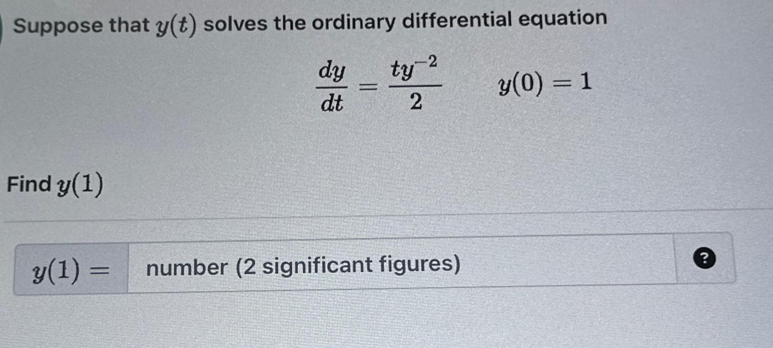 Integrate the equation to find y (t). Explore analysis with applications to dilution models. Solving ordinary differential equations consider rst basic algebraic equations with an unknown,. Suppose that y(t) solves the ordinary differential equation. Find y(1) i tried solving using separable.