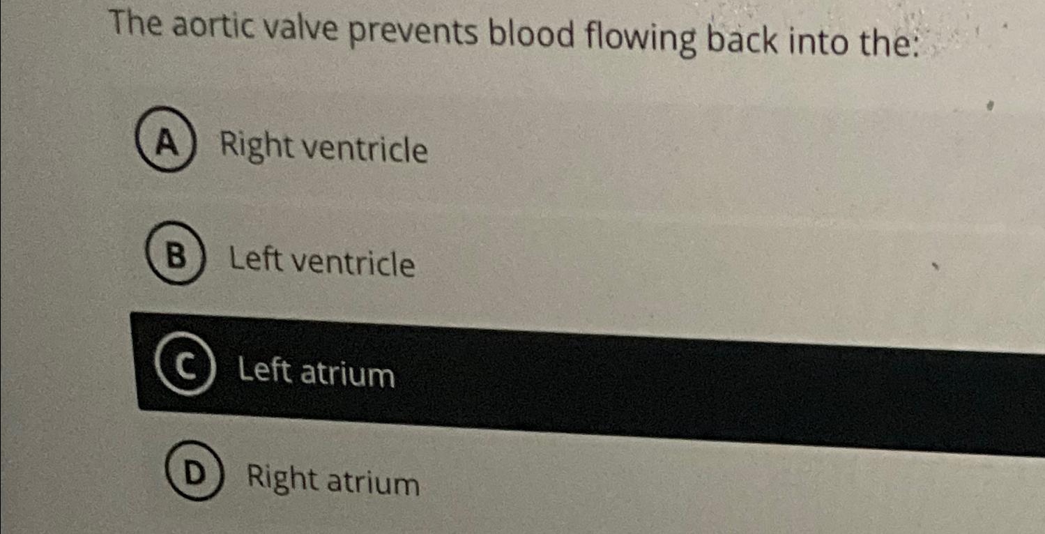 SOLVED The aortic valve prevents blood flowing back into the A) Right