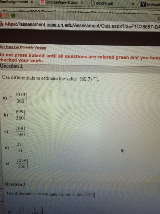 SOLVED aple use Iinear approximatan or differentials) estimate the