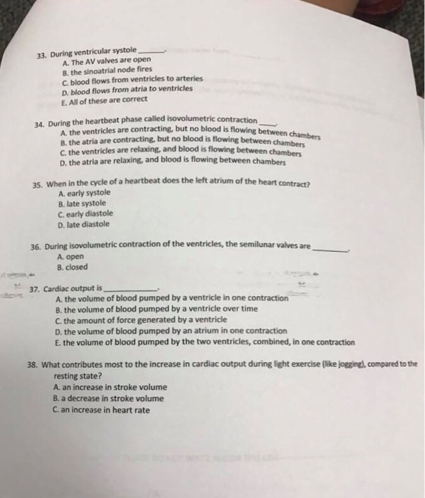Solved 33, During ventricular systole A. The AV valves are