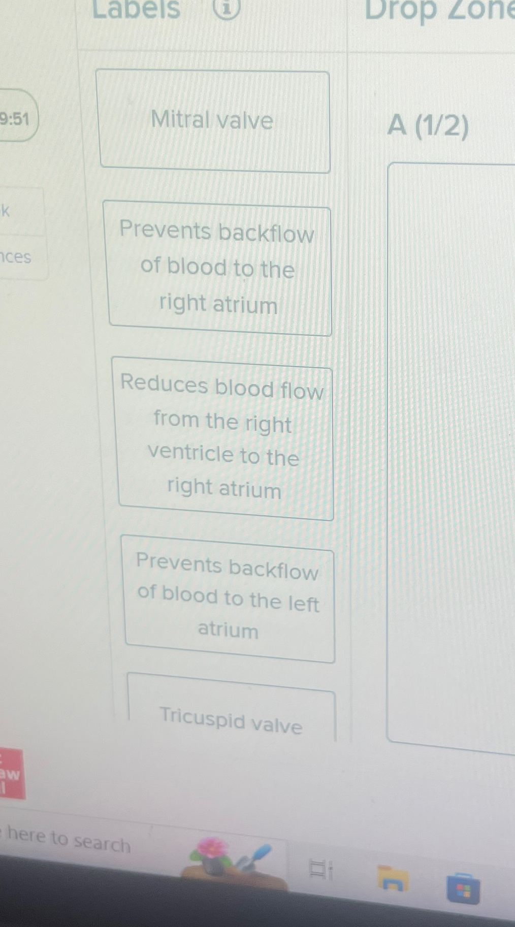 Solved A (1/2)B (22)Prevents backflow of blood to the left