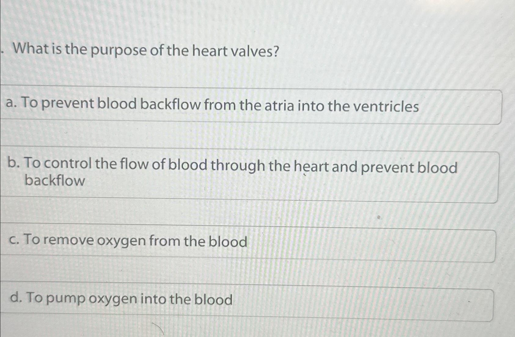 What is the purpose of the heart valves?a. To